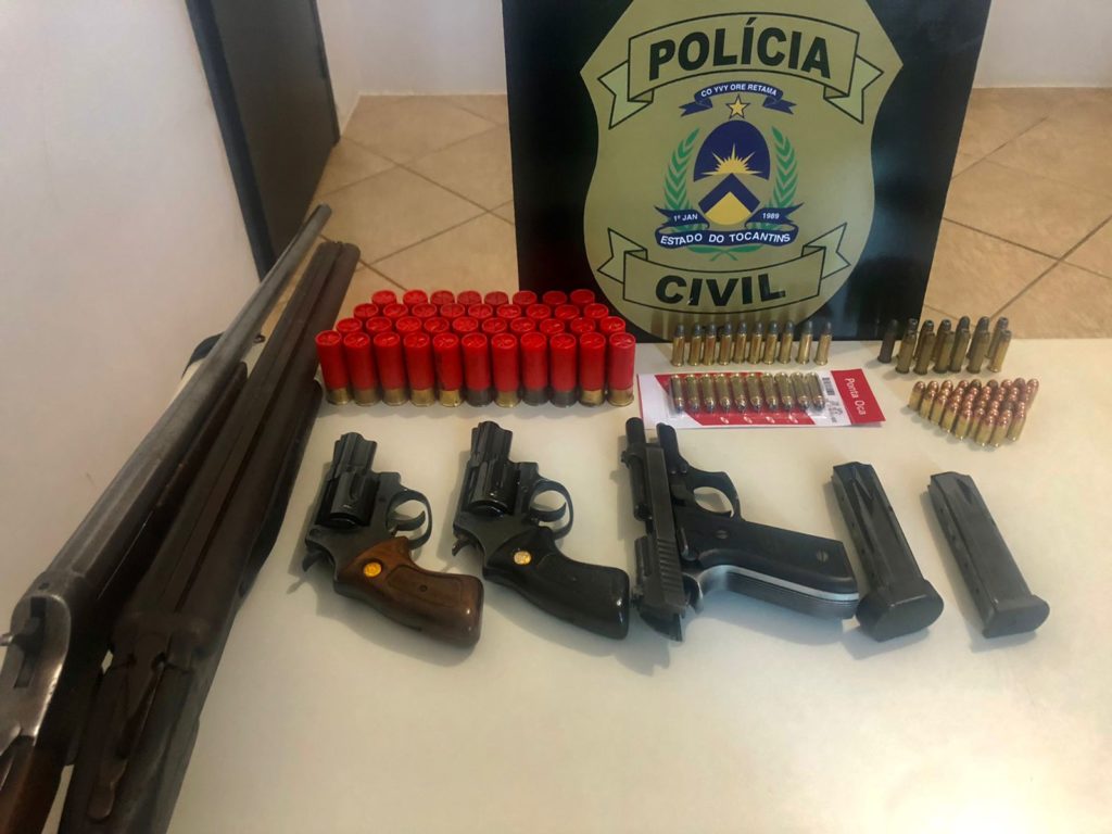 A Polícia Civil do Tocantins (PC-TO), apreendeu na manhã desta segunda-feira, 25, cinco armas de fogo e mais de 100 munições na cidade de Pequizeiro. A ação foi realizada por uma força-tarefa, composta por policiais civis da 6ª Divisão de Combate ao Crime Organizado (6ª DEIC), 48ª DP e 5ª Delegacia Especializada de Atendimento à Mulher e Vulneráveis (5ª DEAMV), todas de Guaraí e ocorrem em cumprimento a dois mandados de busca e apreensão.