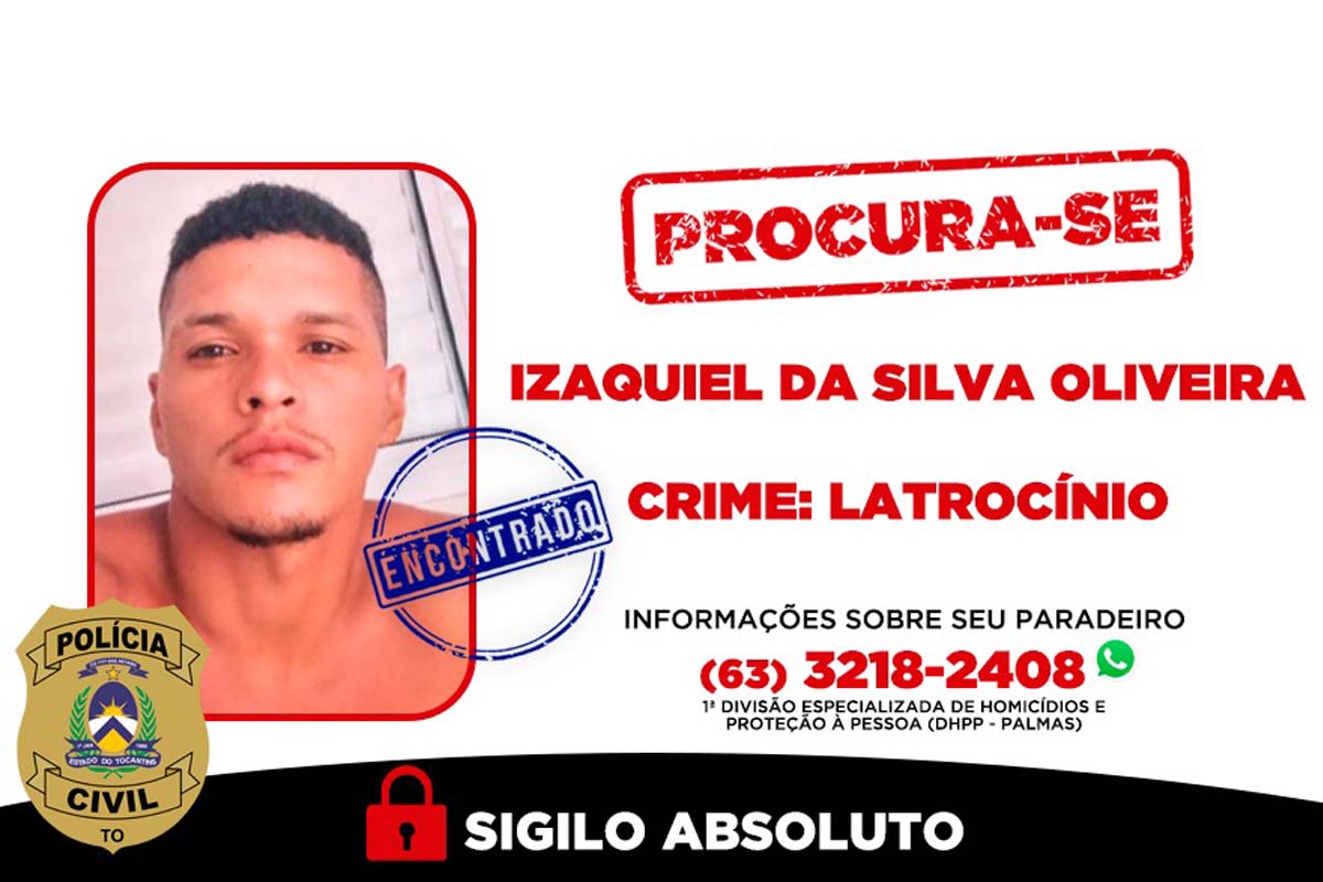 A prisão de Izaquiel aconteceu após a divulgação de sua imagem como foragido. Segundo a polícia, a veiculação levou ao recebimento de diversas denúncias indicando sua presença em Lagoa do Tocantins. “A equipe se deslocou até o município, realizou levantamentos e confirmou sua localização. Durante a abordagem, ele tentou fugir, mas acabou cercado e se entregou sem resistência”, informou o delegado Guilherme Torres, responsável pelo inquérito.